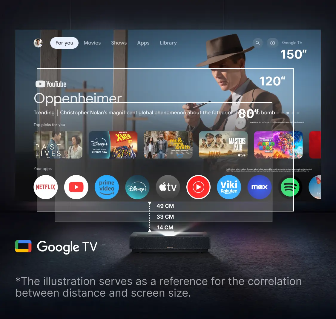 You’ll need only 49cm between a 150” screen and the Formovie Cinema Edge, boasting an ultra-short throw ratio of only 0.23:1 to make even the smallest room an entertainment area.