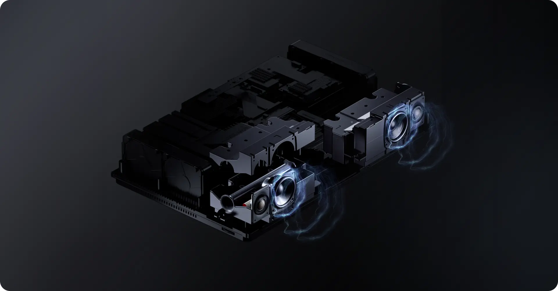 The audio system boasts dual 15W speakers, each equipped with a spacious 990cc sound chamber that houses both a tweeter and a woofer for impeccable frequency separation.